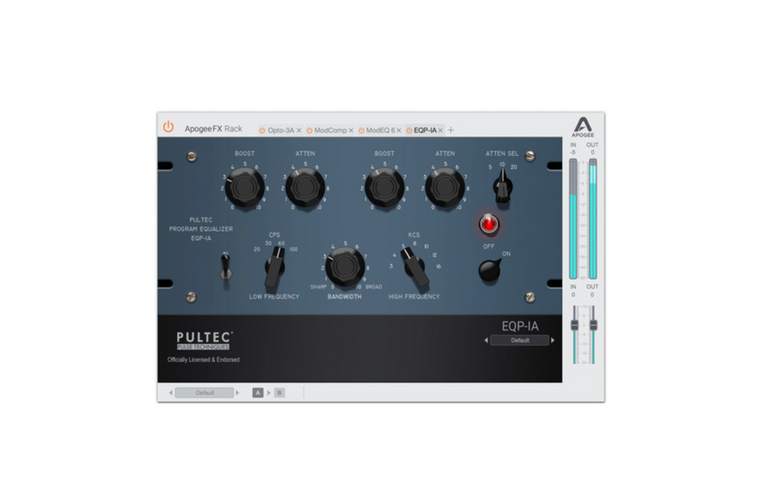O Apogee Electronics EQP-1A é um plug-in de equalizador de programa Pultec que combina o som do lendário equalizador hardware EQP-1A da Pultec com vários modos de alimentação, roteamento e monitoramento.