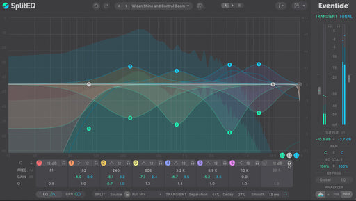 Destaques do Produto EQ paramétrico de 8 bandas Separador de transientes e sons tonais Modos L / R e Mid / Side Mais de 150 presets Inclinaçõe...