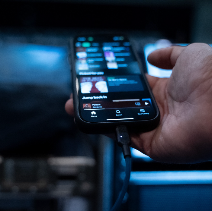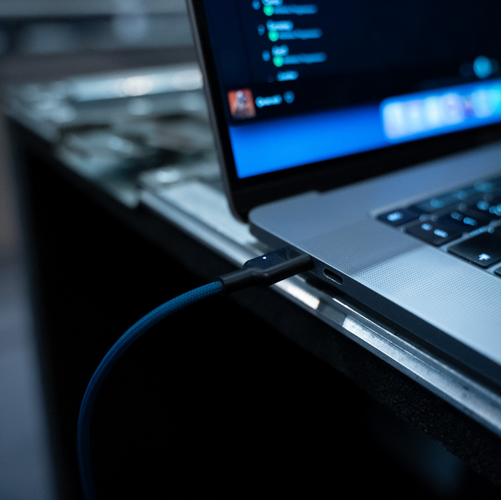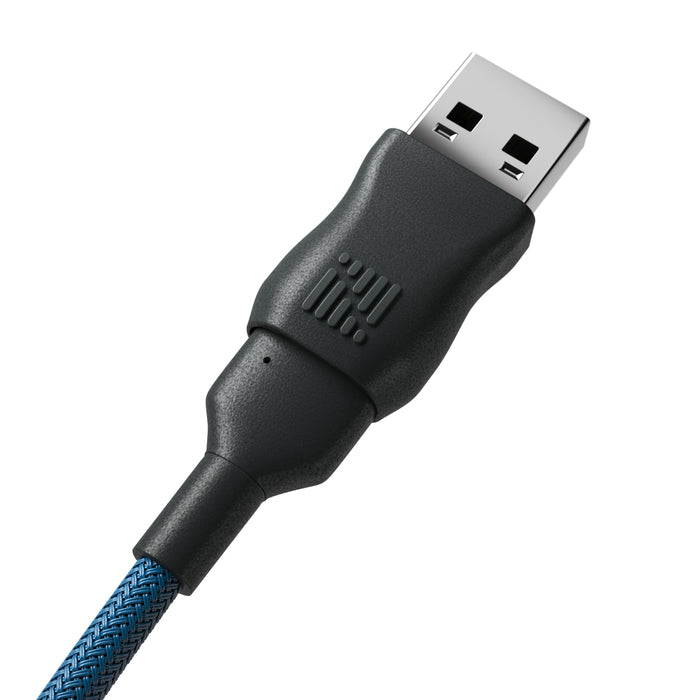 A custom braided sleeve of 24-gauge fiber nylon reinforces the cable, protecting it from accidental pulls or pinches. The braid is detachable from the cable, ensuring maximum flexibility and a soft touch.