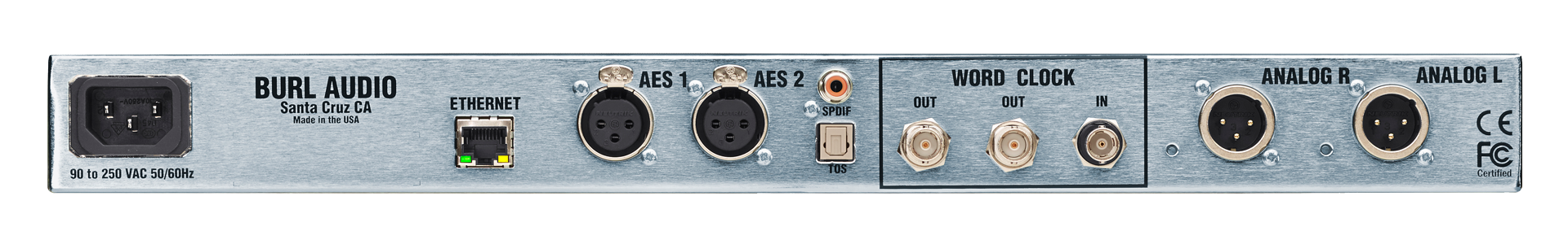 • BNC wordclock input with two extremely low jitter clock outputs