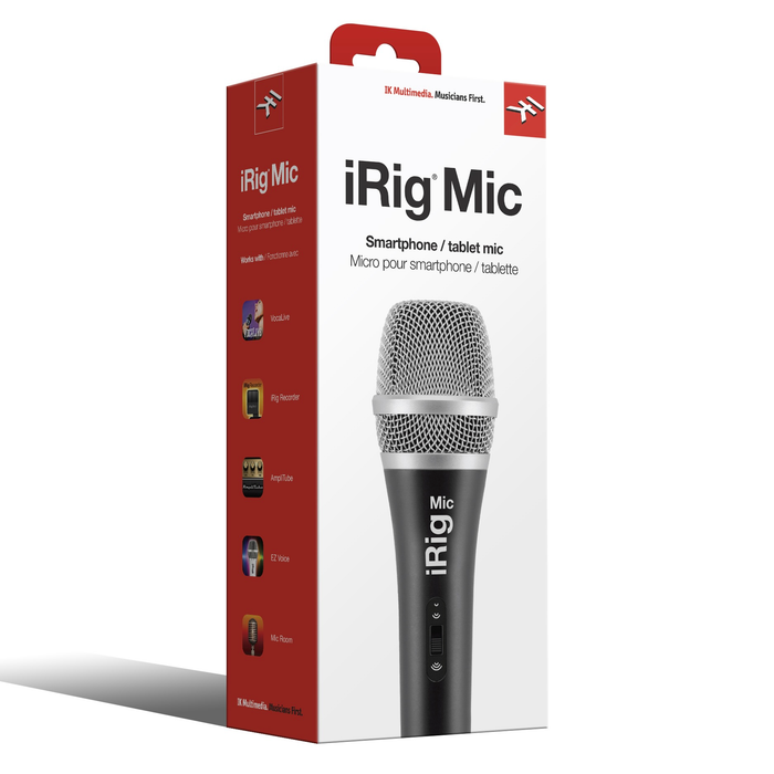 ¡La grabación portátil de calidad profesional ha llegado al iPhone, iPod Touch y iPad! El IK Multimedia iRig Mic ofrece la misma capacidad simple de plug-in-and-play para la grabación portátil con un dispositivo móvil Apple que su AmpliTube iRig lo hizo para la guitarra. oh iRig Mic es ideal para cantantes, vocalistas y compositores en movimiento, pero también perfecto para grabar discursos, instrumentos, actuaciones u otras fuentes de sonido en el estudio, en el escenario o en el campo . El iRig Mic también viene con la aplicación de grabación gratuita de IK. ¡Simplemente conecta el iRig Mic y un par de tus teléfonos favoritos, inicia la aplicación y listo!