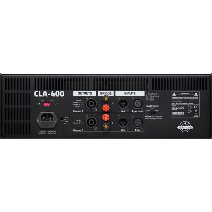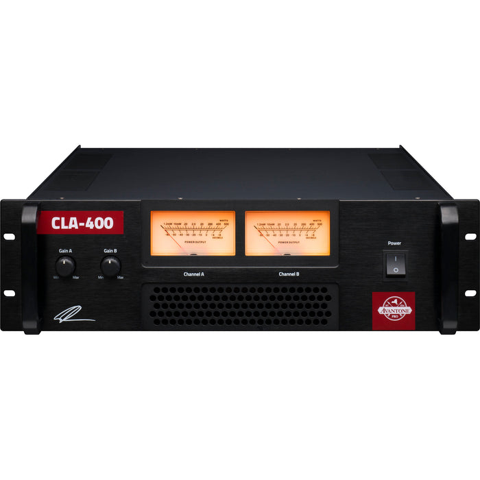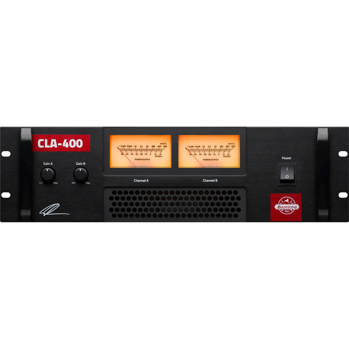 Um amplificador Classe AB de design clássico, a Avantone constrói o CLA-400 à moda antiga, com componentes sem compromisso em um chassi robusto 3U resfriado por convecção. O CLA-400 pode ser usado com qualquer monitor de estúdio passivo que exija uma faixa dinâmica séria. A Avantone teve um cuidado meticuloso para criar um amplificador no estilo tradicional de estúdio, com generosos medidores VU, componentes japoneses de alta qualidade e uma robusta fonte de alimentação linear com transformador toroidal.