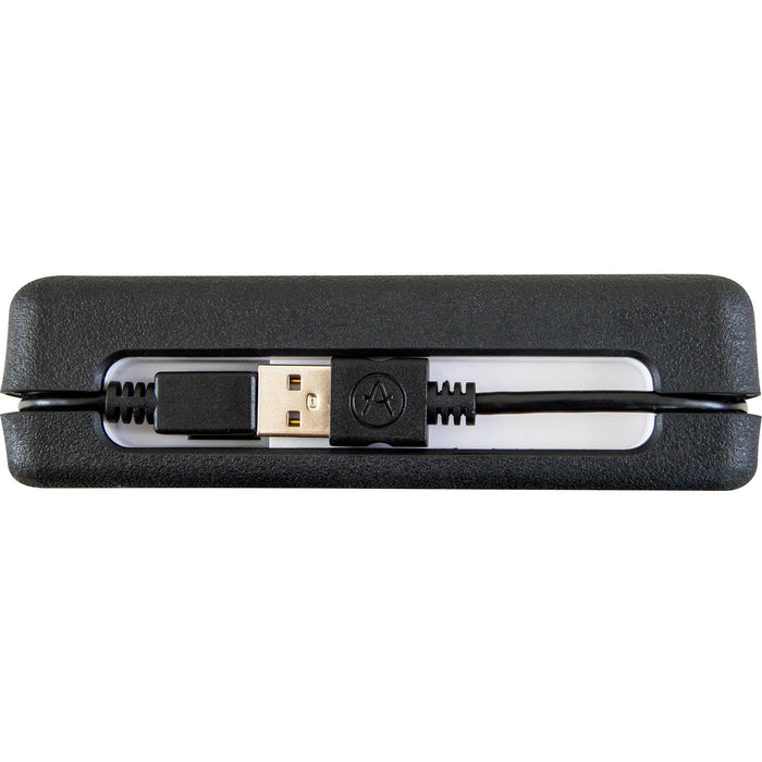 O MicroLab possui um organizador de cabos integrado para manter sua configuração organizada e tornar o armazenamento e a viagem rápidos e fáceis. A porta USB é rebaixada, portanto nenhum cabo se destaca. Use-o em qualquer configuração: empurre-o contra seu laptop, use-o lado a lado com outro equipamento, sem bagunça, sem confusão.