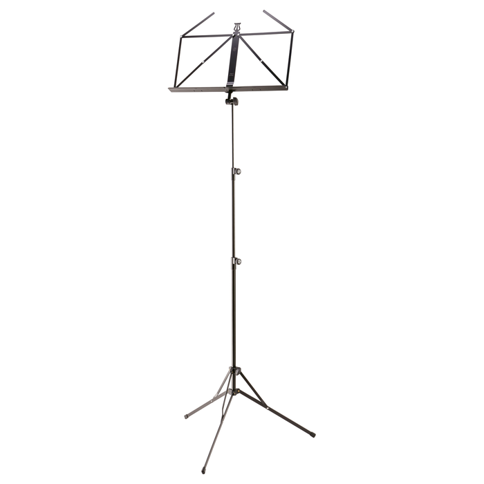 A estante de partitura padrão 10050 extra longa — ou seja, extra alta. Com uma altura de 64–1.500mm, este suporte para partitura alto é adequado para músicos em pé, especialmente para músicos altos. Os elementos de fixação para ajuste de altura e a cabeça ajustável em material fundido de zinco são extremamente robustos e proporcionam a estabilidade e robustez necessárias para esta estante de partitura. As pernas podem ser ajustadas de acordo com as necessidades individuais do músico. O revestimento em pó não é abrasivo e é durável. A estante de partitura é dobrável e fácil de transportar.