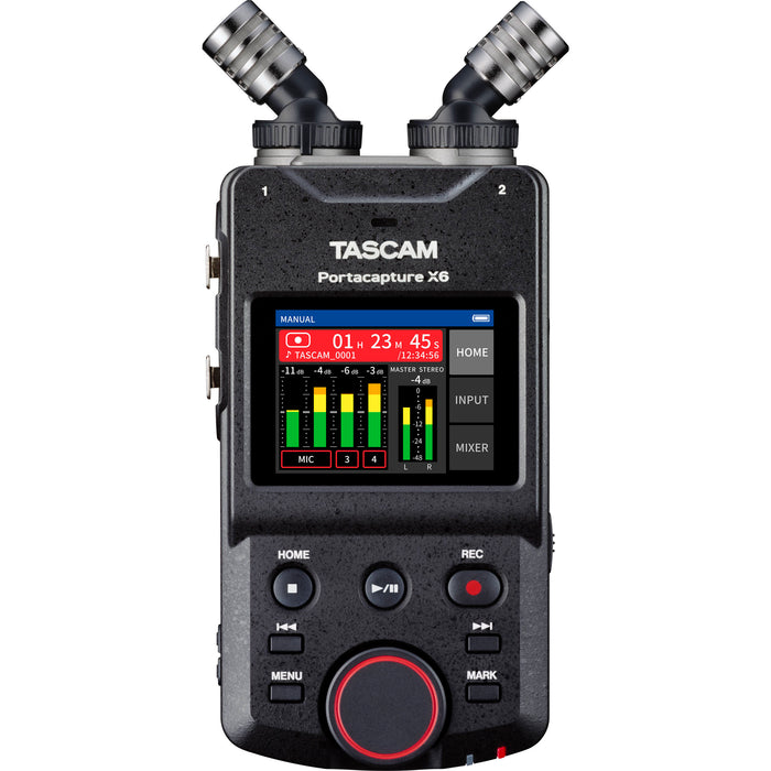 Conectividade é o nome do jogo quando se trata de gravação portátil. Apesar de seu tamanho compacto, o TASCAM Portacapture X6 possui opções de E/S mais do que suficientes para uma grande variedade de projetos. Além dos dois microfones embutidos, o Portacapture X6 possui duas entradas XLR completas com pres de microfone HDDA projetados pela TASCAM. Além das entradas analógicas, o Portacapture X6 também funciona como uma interface de áudio USB para que você possa gravar diretamente em sua DAW. A conectividade abundante permite que o Portacapture X6 grave até 6 trilhas simultaneamente (4 trilhas e 2 mixagens estéreo). Esteja você gravando uma seção de sopro ska, áudio no local ou seu episódio de podcast inovador, o Portacapture X6 irá capturá-lo com facilidade.