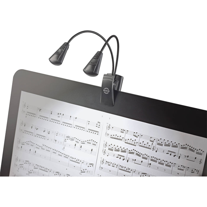 O K&M 12243 FlexLight é uma luz de suporte de duas cabeças para leitura de música no palco, lançando um espaço extra amplo graças às suas duas cabeças. Seu grampo se estende até 25mm para que possa ser fixado em uma ampla varie... Veja mais