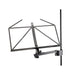 Grande porta-partituras dobrável com braço extensor de aço, para ser aparafusado em tubos de suporte verticais. A faixa de fixação dos tubos está entre ø 11 e ø 30 mm. <... Veja mais