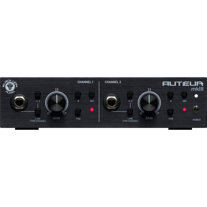 Se você está contando com o microfone integrado da sua interface de áudio, você está se enganando. Mesmo se você tiver um armário de microfone de última geração, nunca conseguirá um som de nível profissional com pré-amplificadores estéreis e famintos por ganho. É aí que entra o Black Lion Audio Auteur MkIII. Este pré-amplificador de microfone de 2 canais é de primeira linha, apresentando um front-end transparente e moderno baseado em IC e um estágio de saída baseado em transformador infundido por caracteres. O resultado é uma resposta ultrarrápida com um som de inspiração vintage que certamente injetará em suas gravações uma qualidade que chama a atenção e exige atenção. O Auteur MkIII inclui todos os recursos que você esperaria de um pré-amplificador de microfone profissional: entradas de linha e hi-Z, saídas de linha balanceadas, um pad de -10dB, phantom power de 48V e inversão de polaridade. E com 62dB de ganho na torneira, o Auteur MkIII está preparado para lidar com todos, exceto os microfones com mais fome de ganho. Você não pode obter um som de nível de estúdio sem um front-end analógico sólido, e o Black Lion Audio Auteur MkIII realmente oferece.