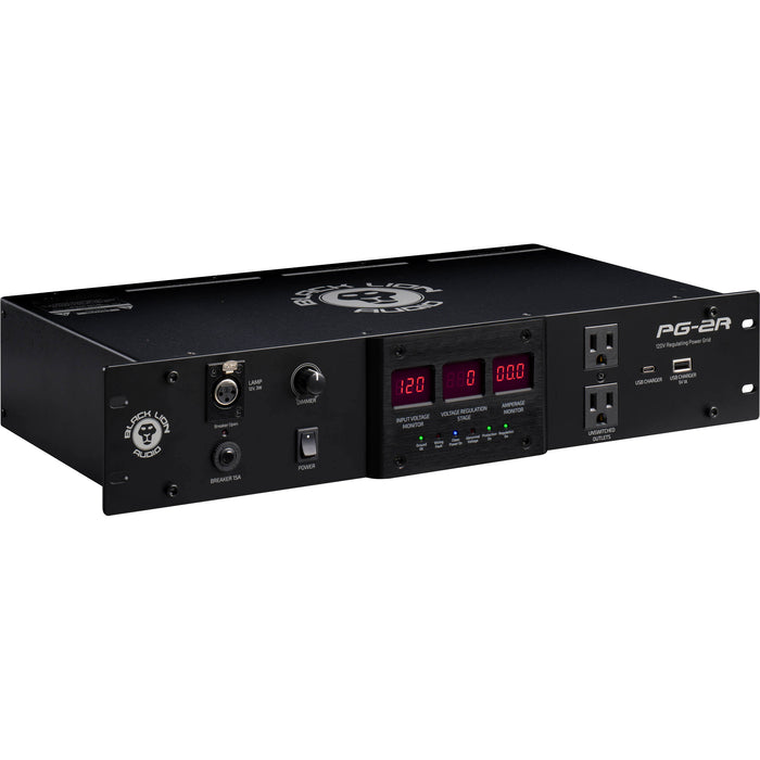 A maioria dos equipamentos modernos contém uma grande variedade de equipamentos analógicos e digitais. O Black Lion Audio PG-2R leva tudo isso em consideração. Em seu painel traseiro, esta excelente unidade abriga um banco de 12 tomadas comutadas, filtradas e protegidas contra surtos, divididas em quatro grupos: Áudio Digital, Áudio Analógico e Alta Corrente. As saídas Analog Audio e High Current são atrasadas, garantindo que seu amplificador e alto-falantes sejam os últimos a ligar e os primeiros a desligar, evitando assim o som “pop” que faz todo dono de estúdio se encolher. No painel frontal do PG-3R, você também obtém duas tomadas de conveniência filtradas e não comutadas e dois carregadores USB. Um par de conectores de lâmpada XLR também está incluído.