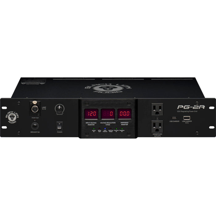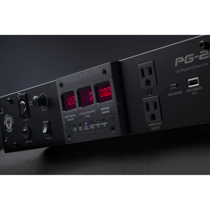 O PG-2R é muito mais do que um rack cheio de tomadas — ele contém tudo o que você precisa para inspirar confiança absoluta na segurança e no desempenho do seu equipamento. Para começar, ele inclui monitores de tensão de entrada e monitor de amperagem para análise em tempo real, juntamente com indicadores de status de LED para aterramento, polaridade, filtragem de ruído, tensão anormal e proteção contra surtos. Além do mais, você recebe um alarme sonoro que o notifica se a unidade receber tensão insegura. Além disso, o visor do estágio de regulação de tensão do PG-2R oferece uma visão geral de como a unidade está funcionando, monitorando continuamente sua tensão de entrada e corrigindo flutuações de energia, quedas de energia e outros problemas de tensão potencialmente prejudiciais.