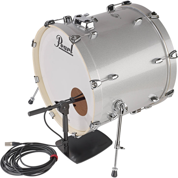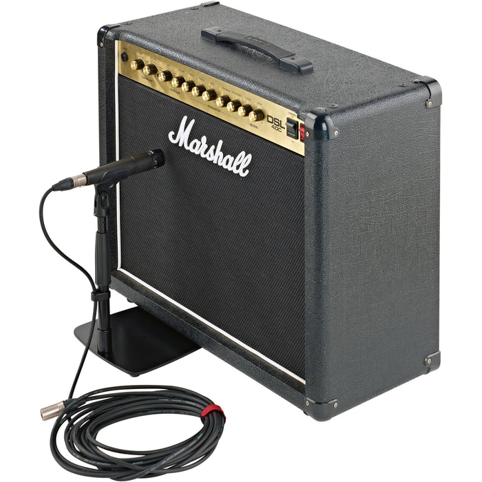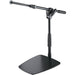 Suporte de microfone compacto e compacto para bumbos, AMPs, Cajons, etc. O suporte plano e estável desliza, por exemplo, sob um bumbo, um AMP ou Cajon e é uma boa escolha sempre que um tripé for muito volumoso. Graças ao fácil ajuste de altura e ao braço extensível, o microfone pode ser ajustado individualmente e com precisão. Quatro pés de borracha elástica absorvem o som de impacto e reduzem o ruído de transmissão indesejado.
